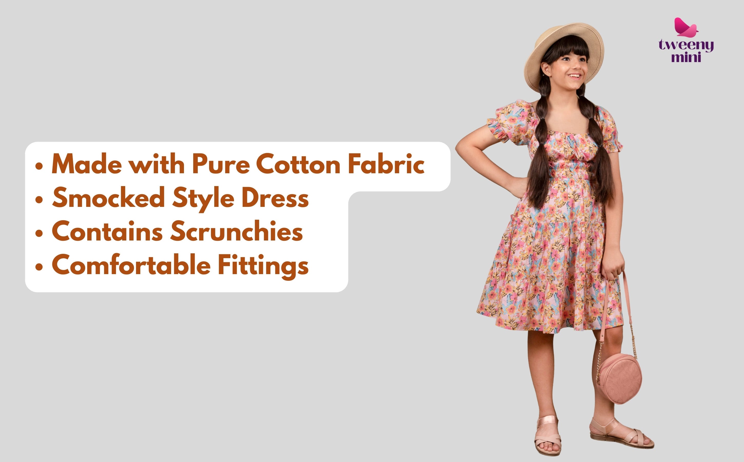 From the breathable cotton fabric to the charming floral print and smocked detailing, every element is designed to make your child feel confident and comfortable. Whether she’s twirling, posing, laughing, or exploring, this dress supports every moment with grace.