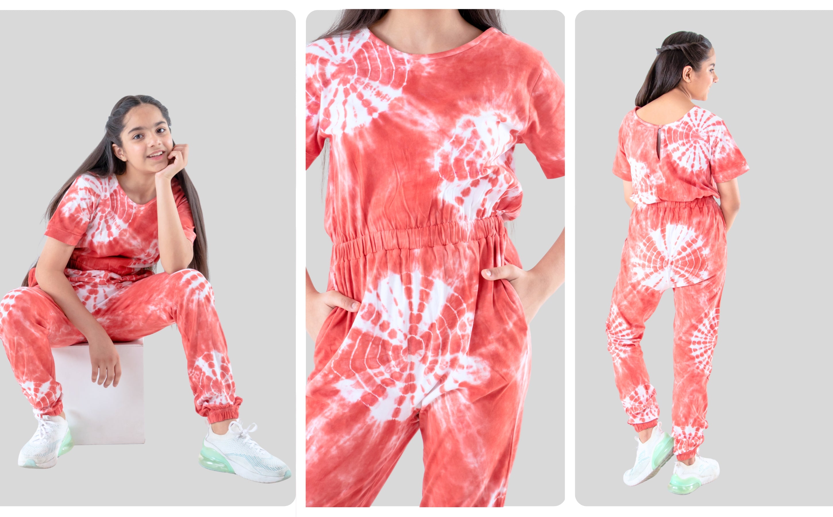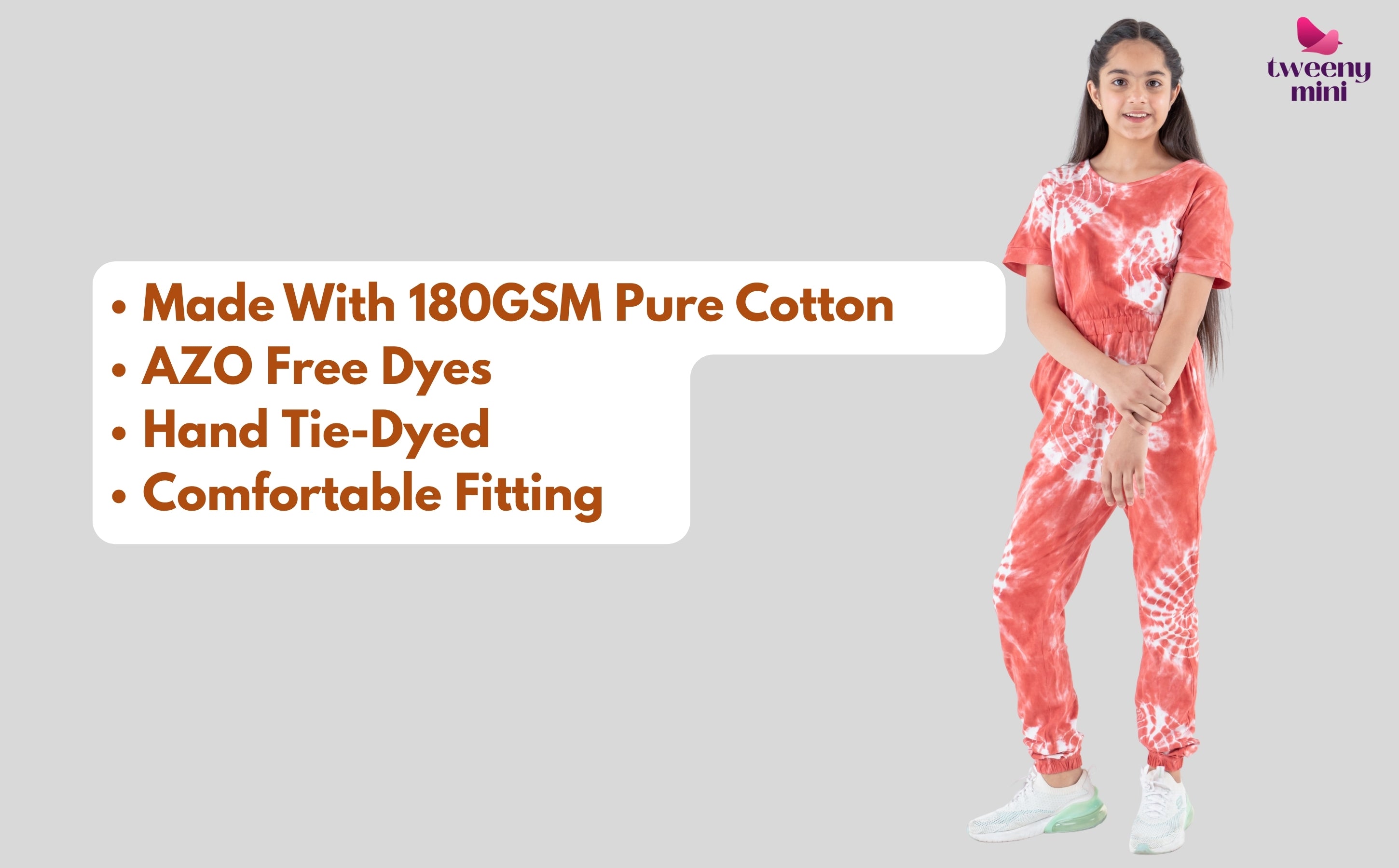 Give your child a stylish and breathable option this season with our girls tie dye jumpsuit. With its striking mineral red color, soft cotton base, and comfortable features, it’s perfect for warm weather, weekend outings, and fun-filled days. Designed with care and built to last, this jumpsuit belongs in every kid's warm whether wardrobe.