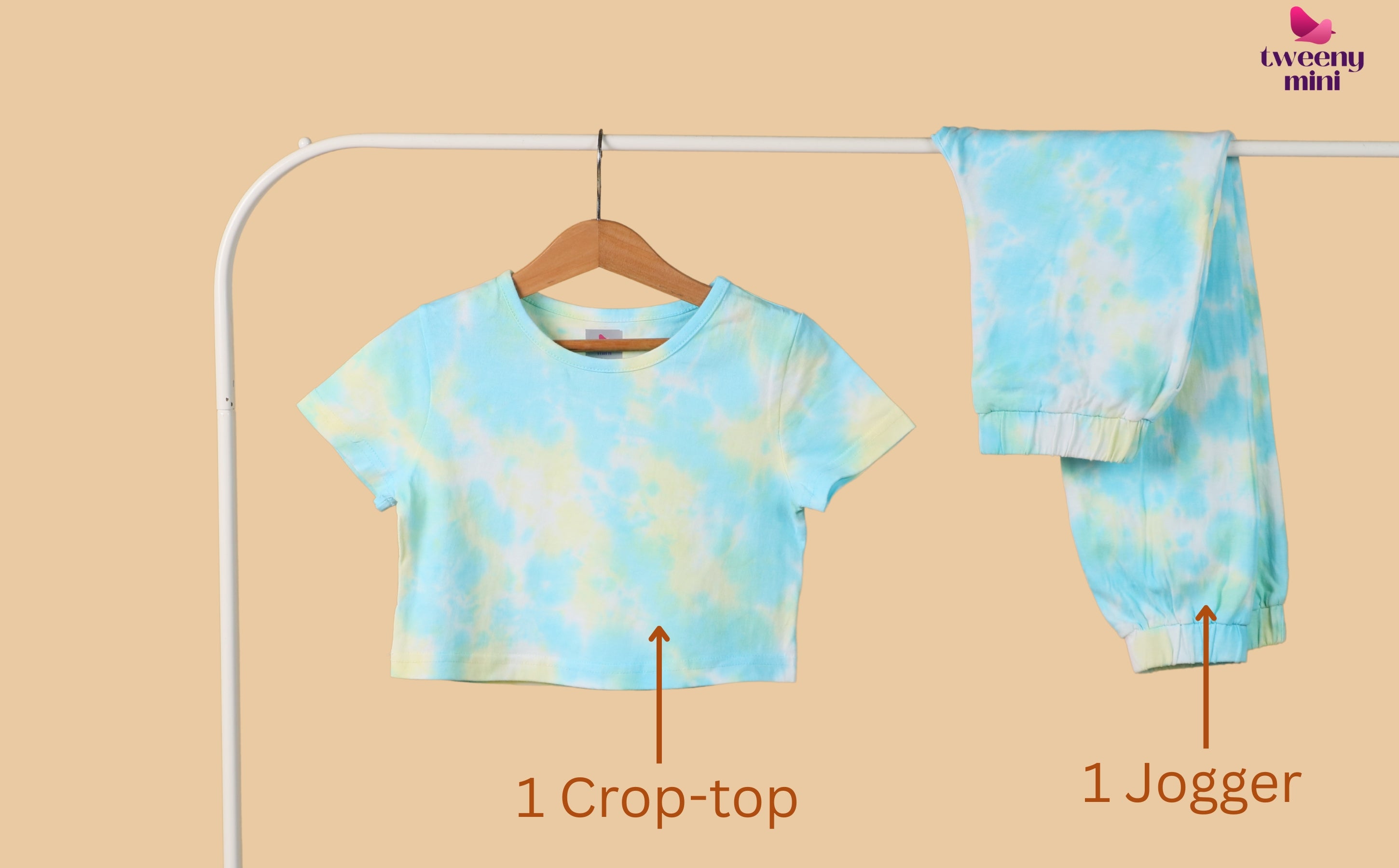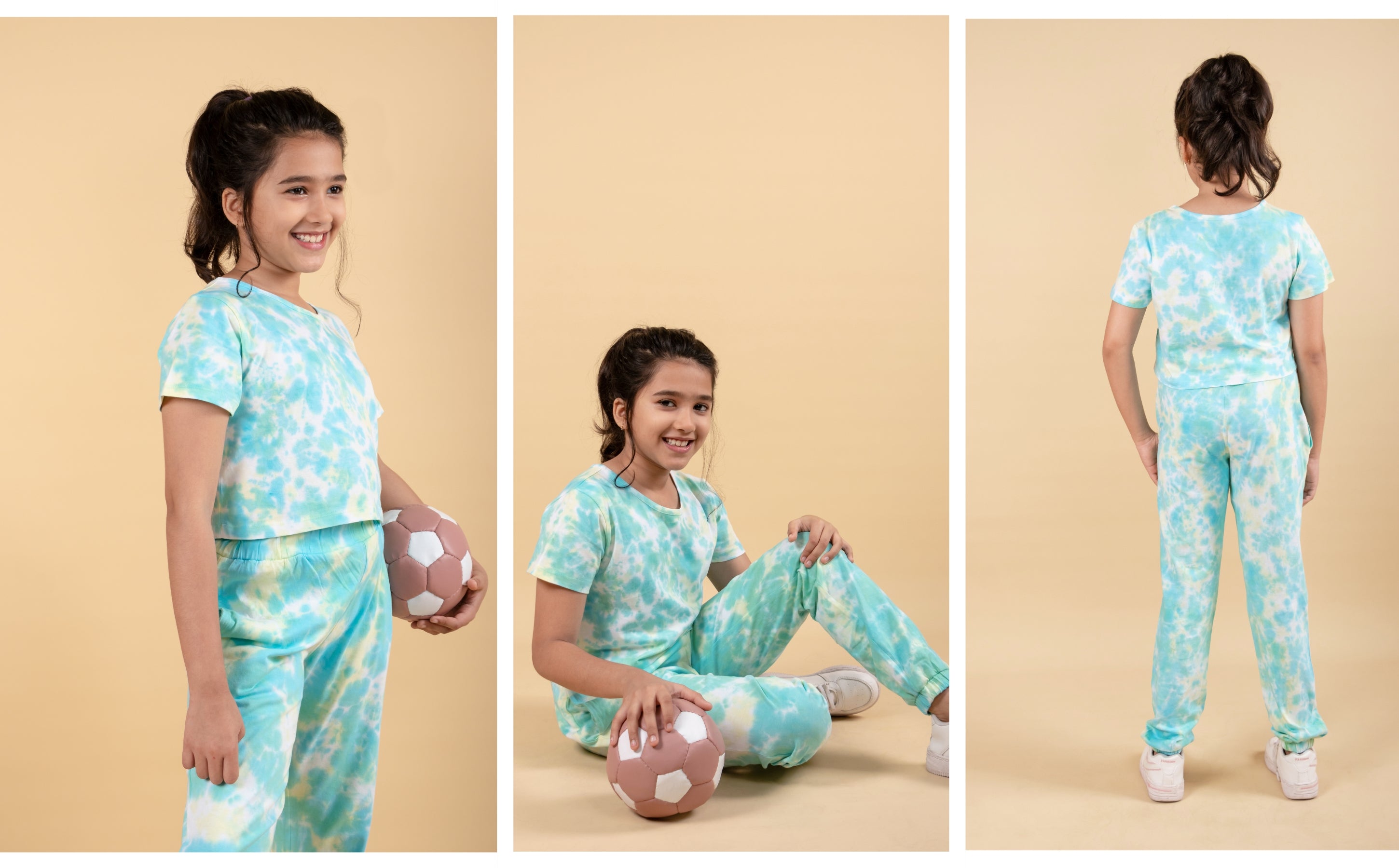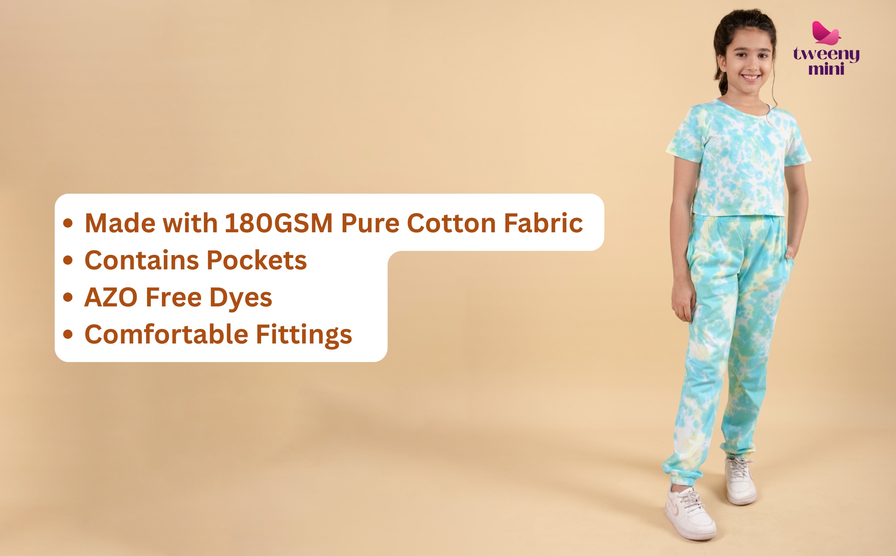 Stylish Summer Tie-Dye Joggers Co-ord Set Kids Girls (Aqua Blue)