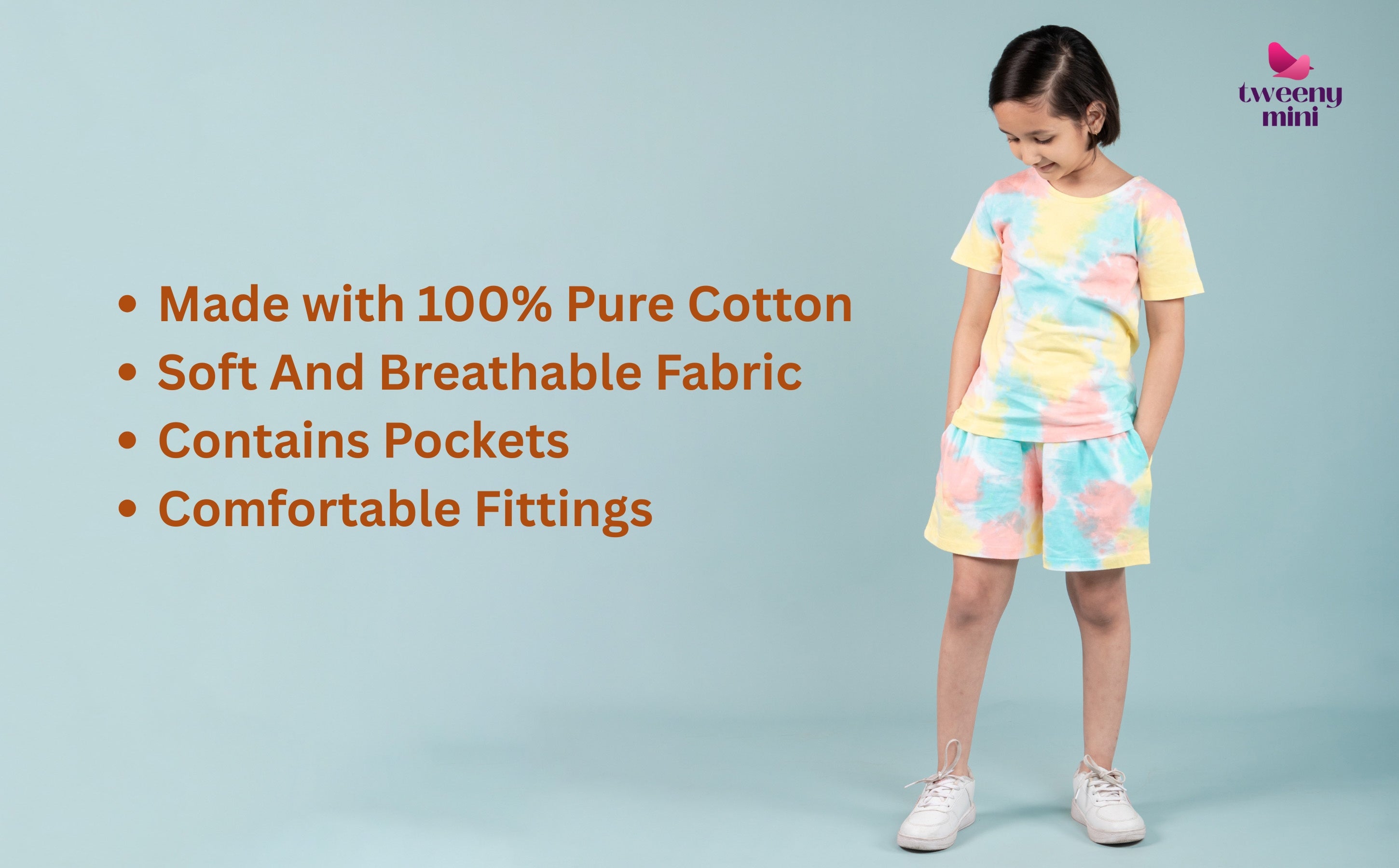 Bedtime feels easier and breezier when your child wears a summer night dress that keeps her cool, comfortable, and cheerful all night long. This handcrafted tie-dye shirt-and-shorts set is thoughtfully designed for warm Indian weather, offering pure cotton softness, playful colors, and the freedom to move during sleep.