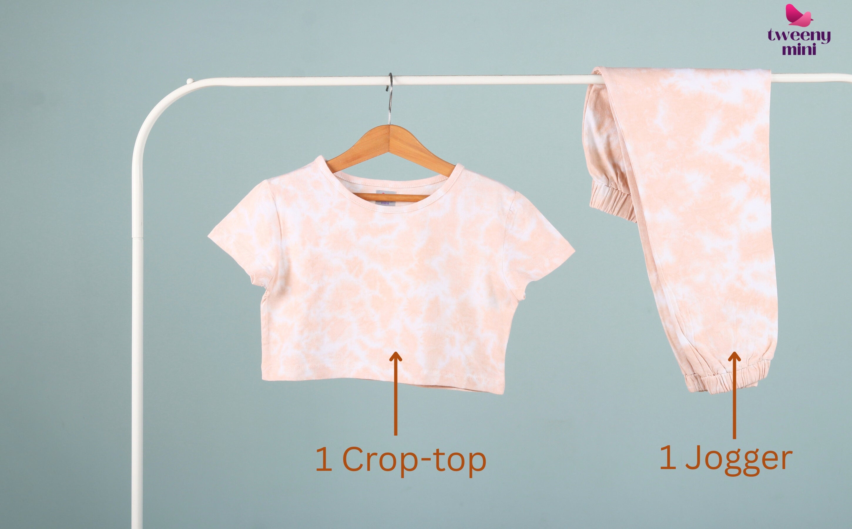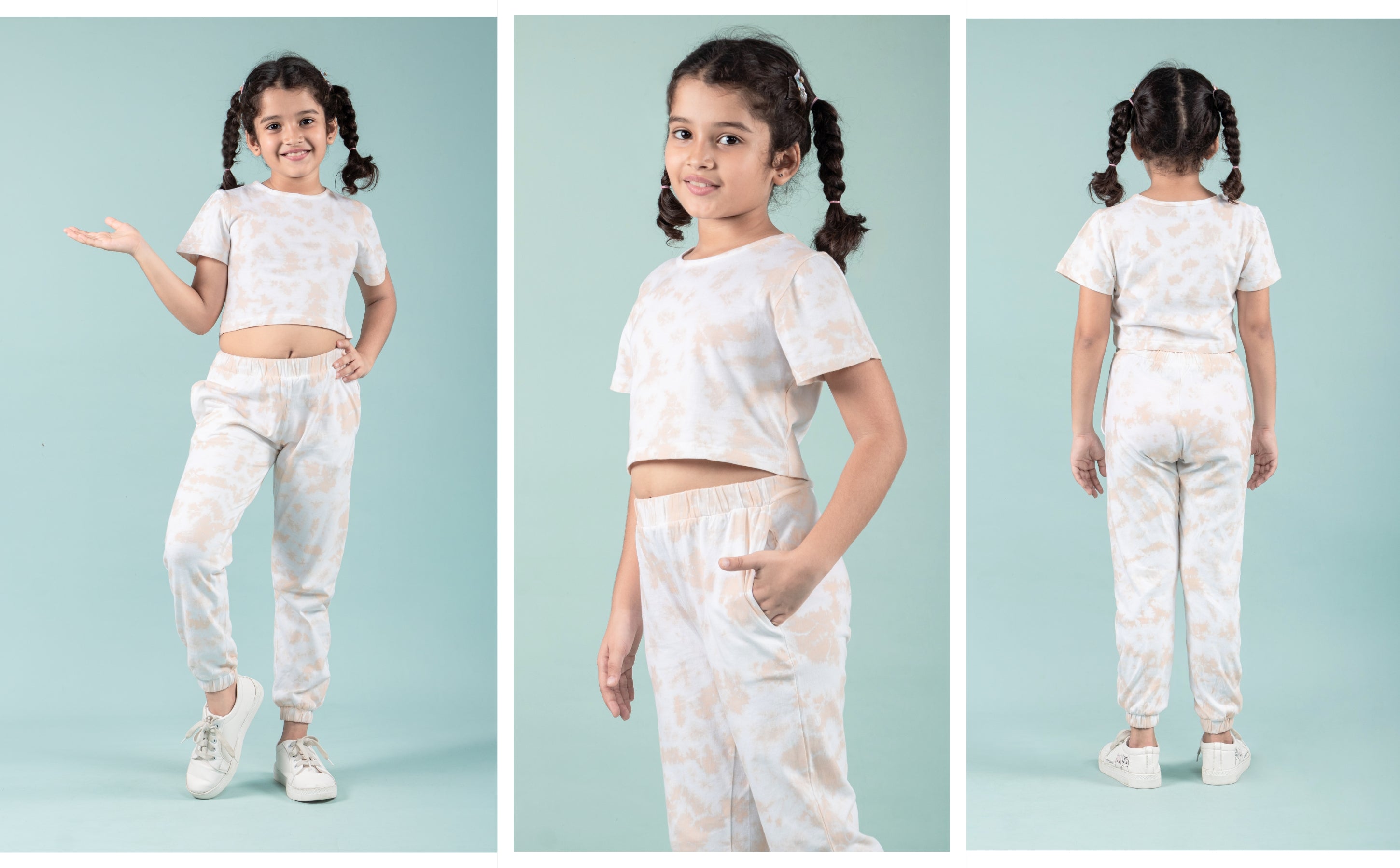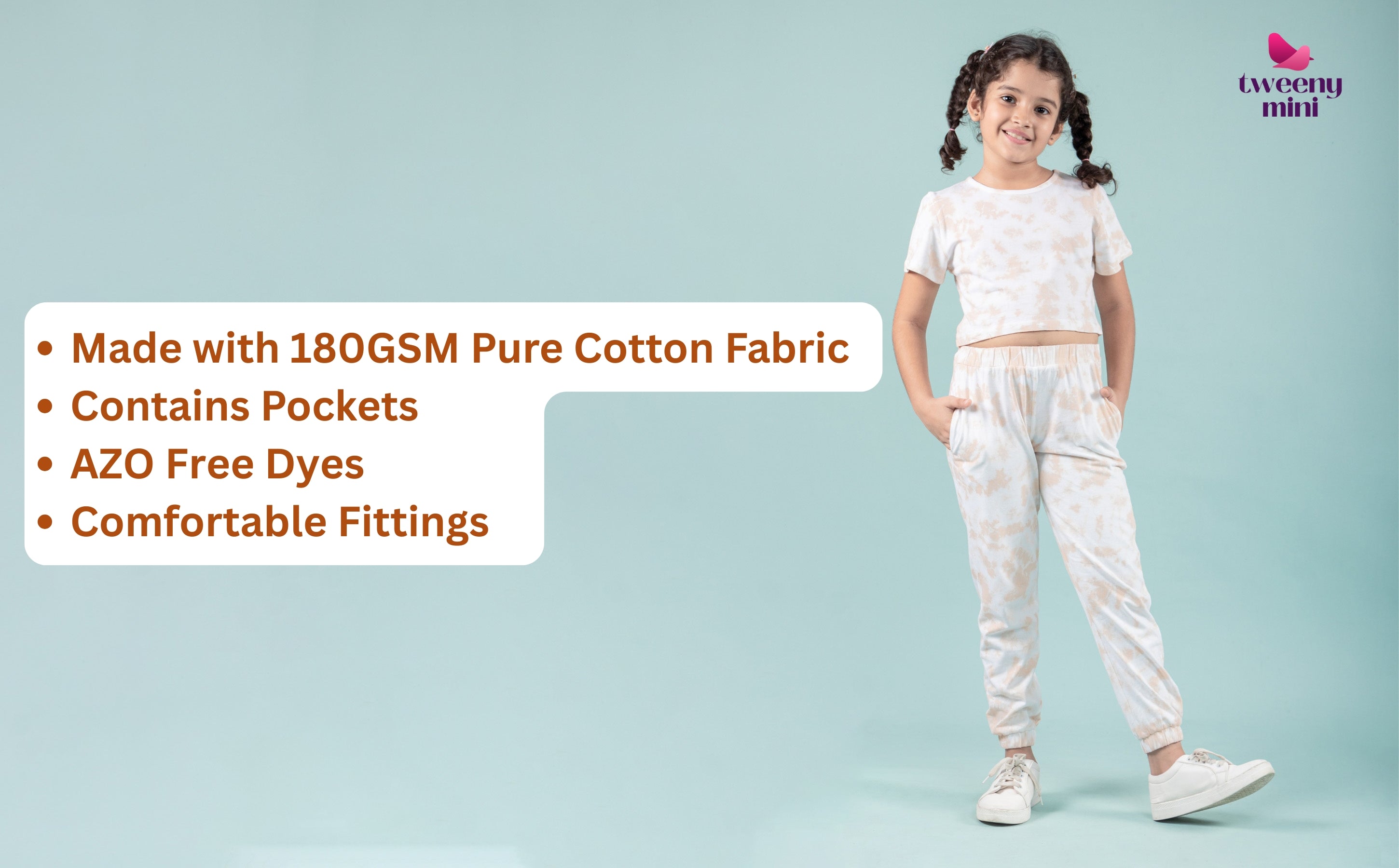 Pure Cotton Tie-Dye Joggers Girls Kids Co-ord Set (Beige)