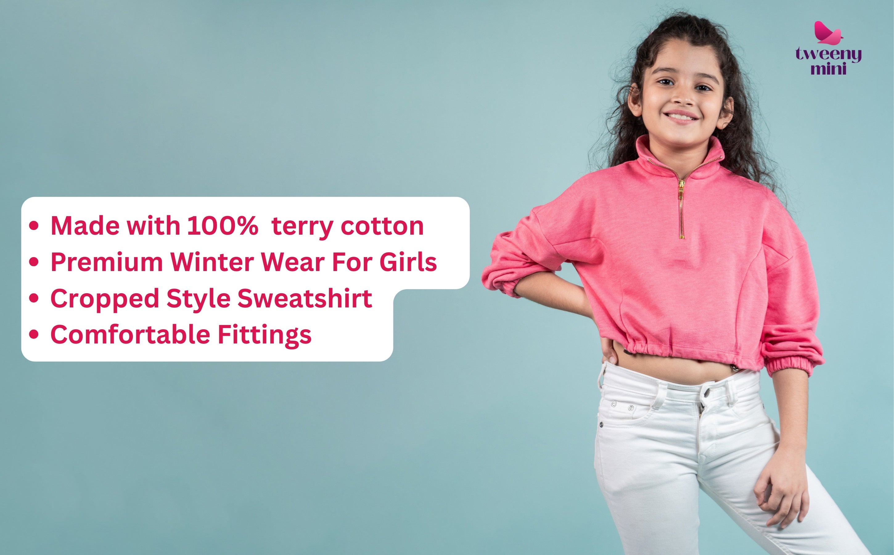 ✔ Ideal girls zippered winter sweatshirt with trendy pink color